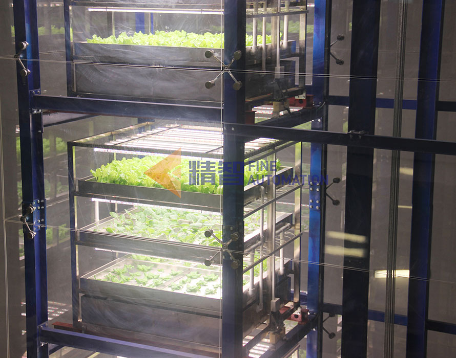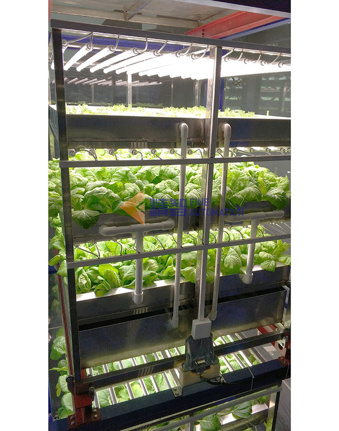 特點:項目占地面積10平米,實際種植面積22平米,采用補光系統,營養液系統和電快插模塊。能夠實現種植模塊自動化、快速搬運、再結合蔬菜采摘、清洗、包裝等流水線即可成為全套的自動化流水蔬菜生產流程,在節約人力的同時,也極大的提高了空間利用率及種植效率,為智慧立體農場的建設提供一個模式范例。
